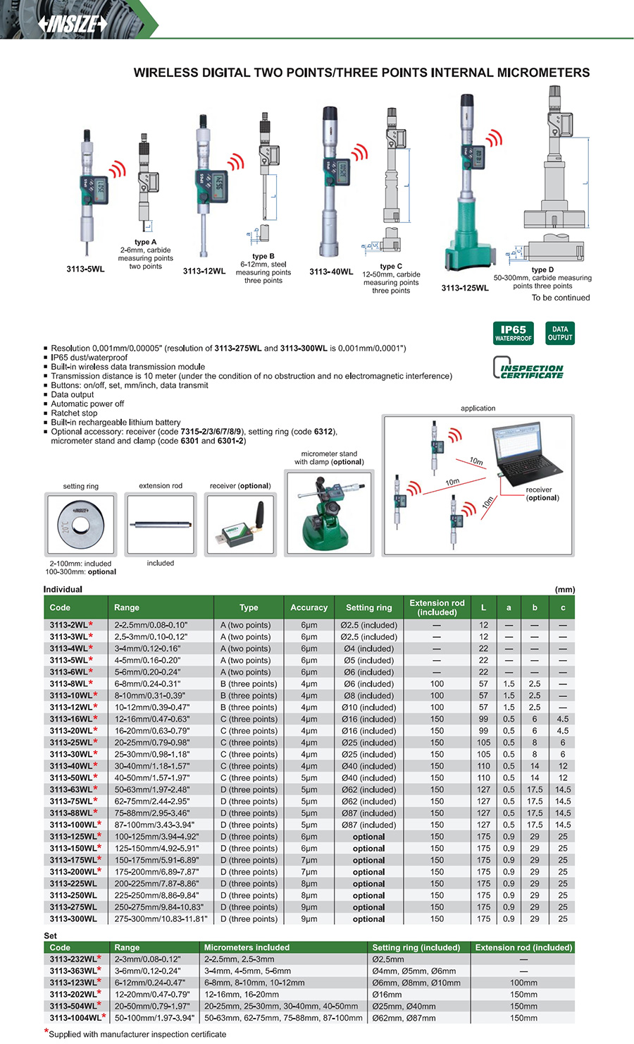 3113-2WL 2-2.5mm/0.08-0.10" 6μm 0.001mm/0.00005"
