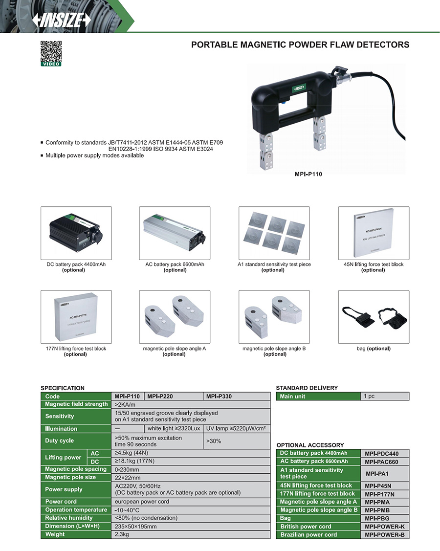 MPI-P110 15/50 engraved groove clearly displayed on A1 standard sensitivity test piece AC:≥4.5kg (44N),DC:≥18.1kg (177N) 0-230mm