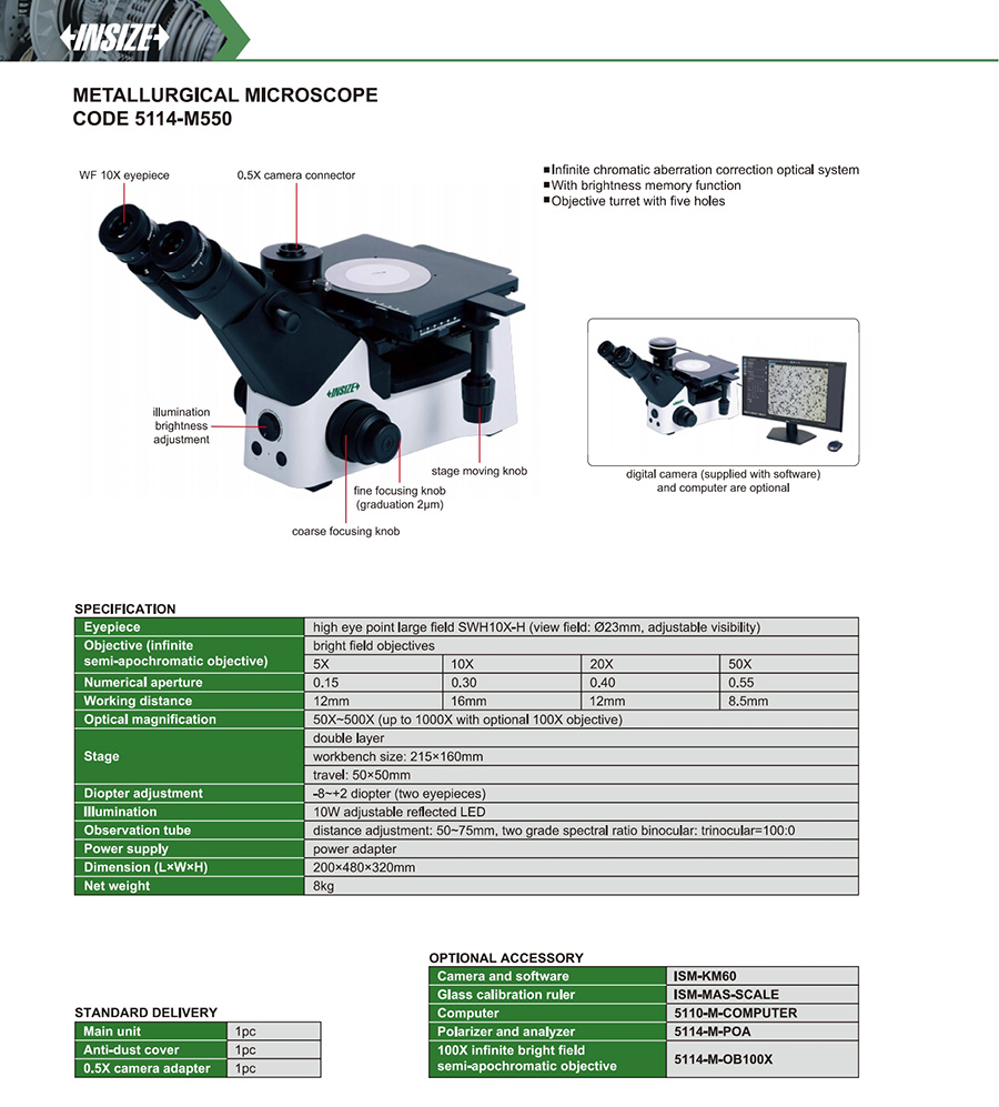 5114-M550 workbench size: 215×160mm, travel: 50×50mm 50X~500X high eye point large field SWH10X-H bright field