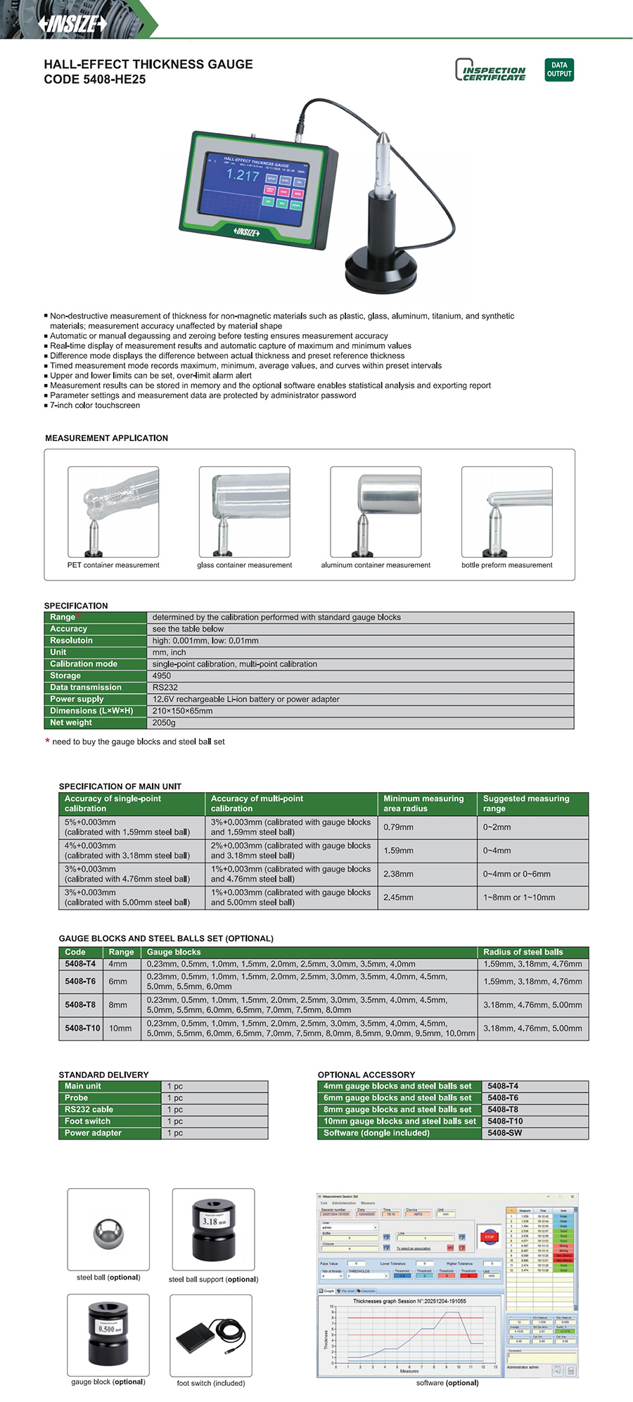 | 5408-HE25 | 4mm, 6mm, 8mm, 10mm | RS232 | mm, inch |