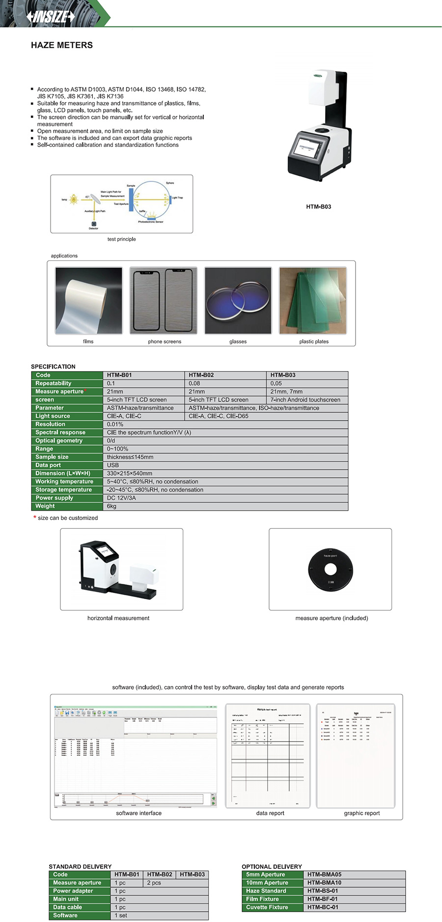 HTM-B03 ASTM-haze/transmittance, ISO-haze/transmittance CIE-A, CIE-C, CIE-D65 21mm, 7mm