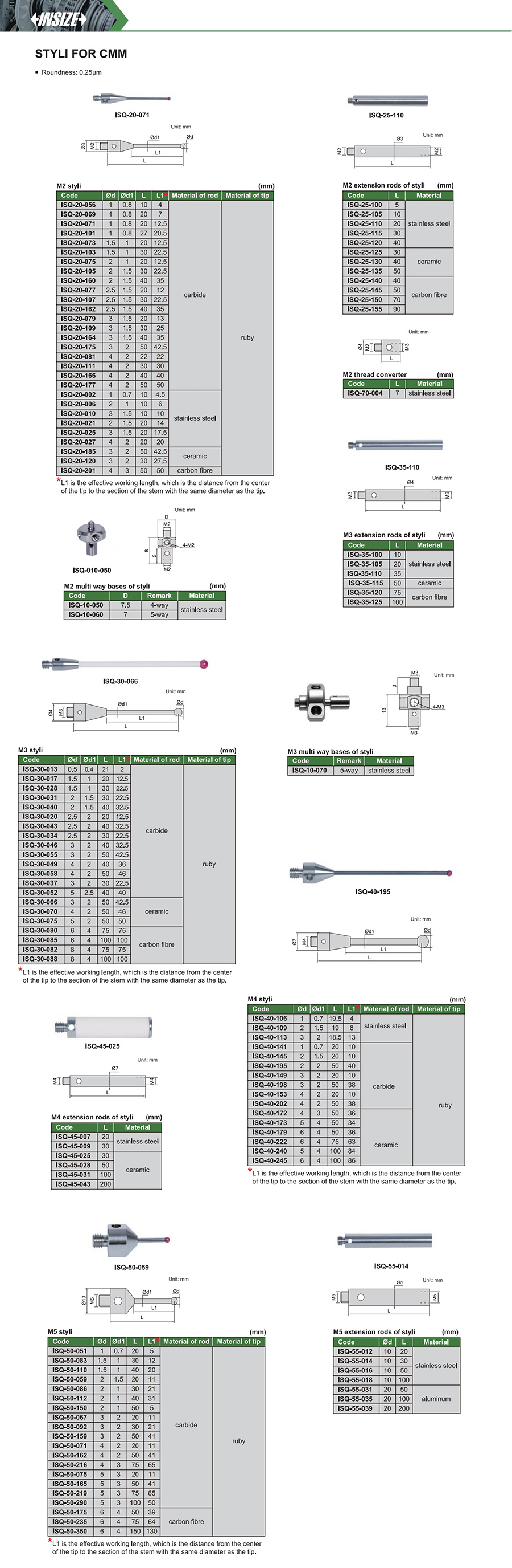 ISQ-40-240 M4 ruby styli 100 5 ceramic