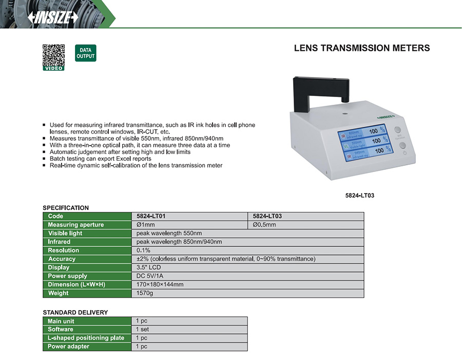 Measures transmittance of visible 550nm, infrared 850nm/940nm