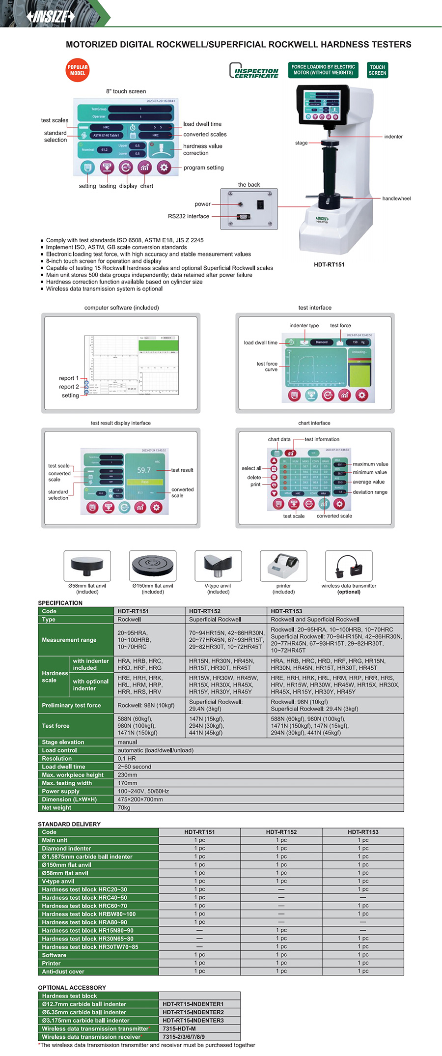 Comply with test standards ISO 6508, ASTM E18, JIS Z 2245