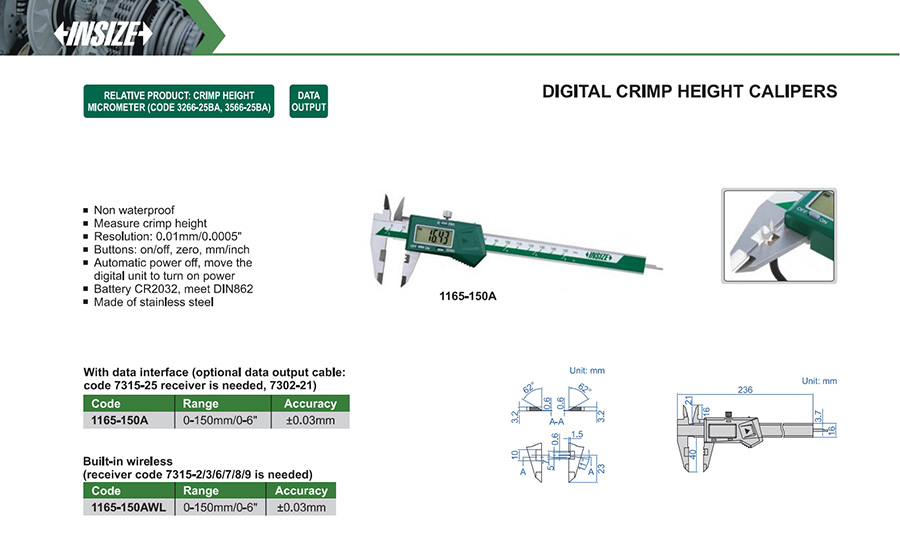 1165-150AWL 0-150mm/0-6" ±0.03mm 0.01mm/0.0005" built-in wireless