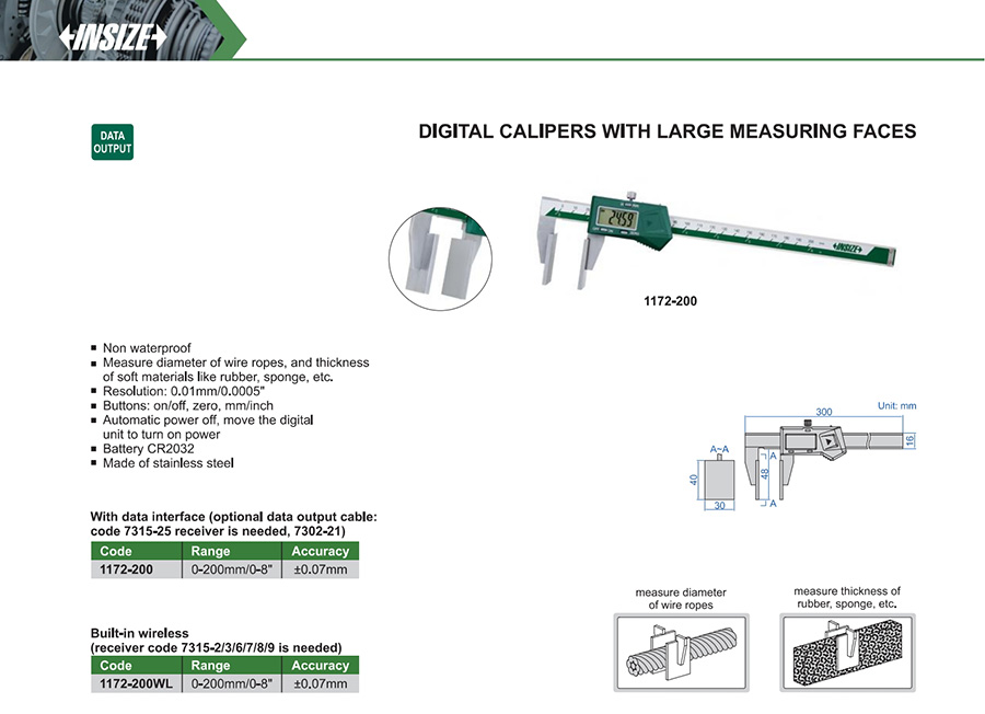 | 1172-200WL | 0-200mm/0-8" | ±0.07mm | 0.01mm/0.0005" | built-in wireless |