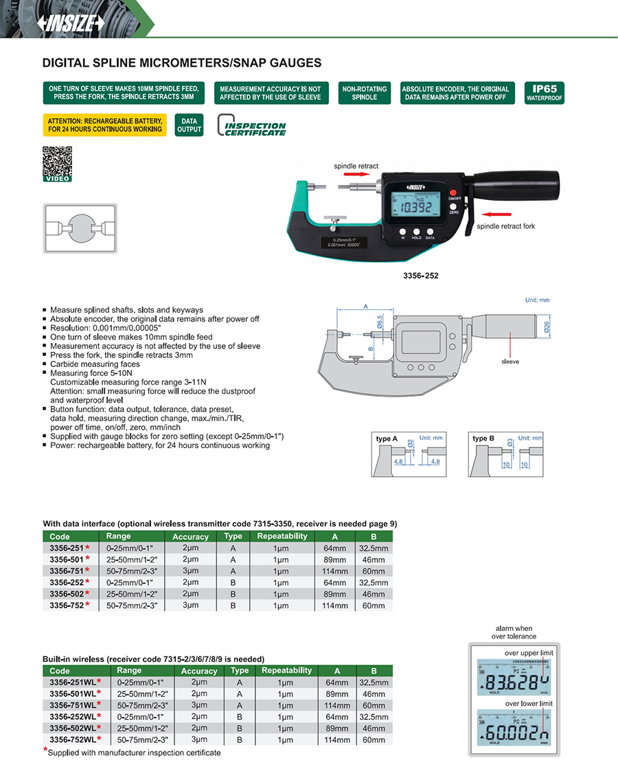 3356-252WL B 0-25mm/0-1" 2μm 0.001mm/0.00005"