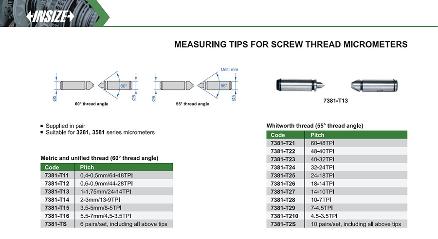 7381-TS metric and unified thread (60° thread angle) 6 pairs/set, including all above tips