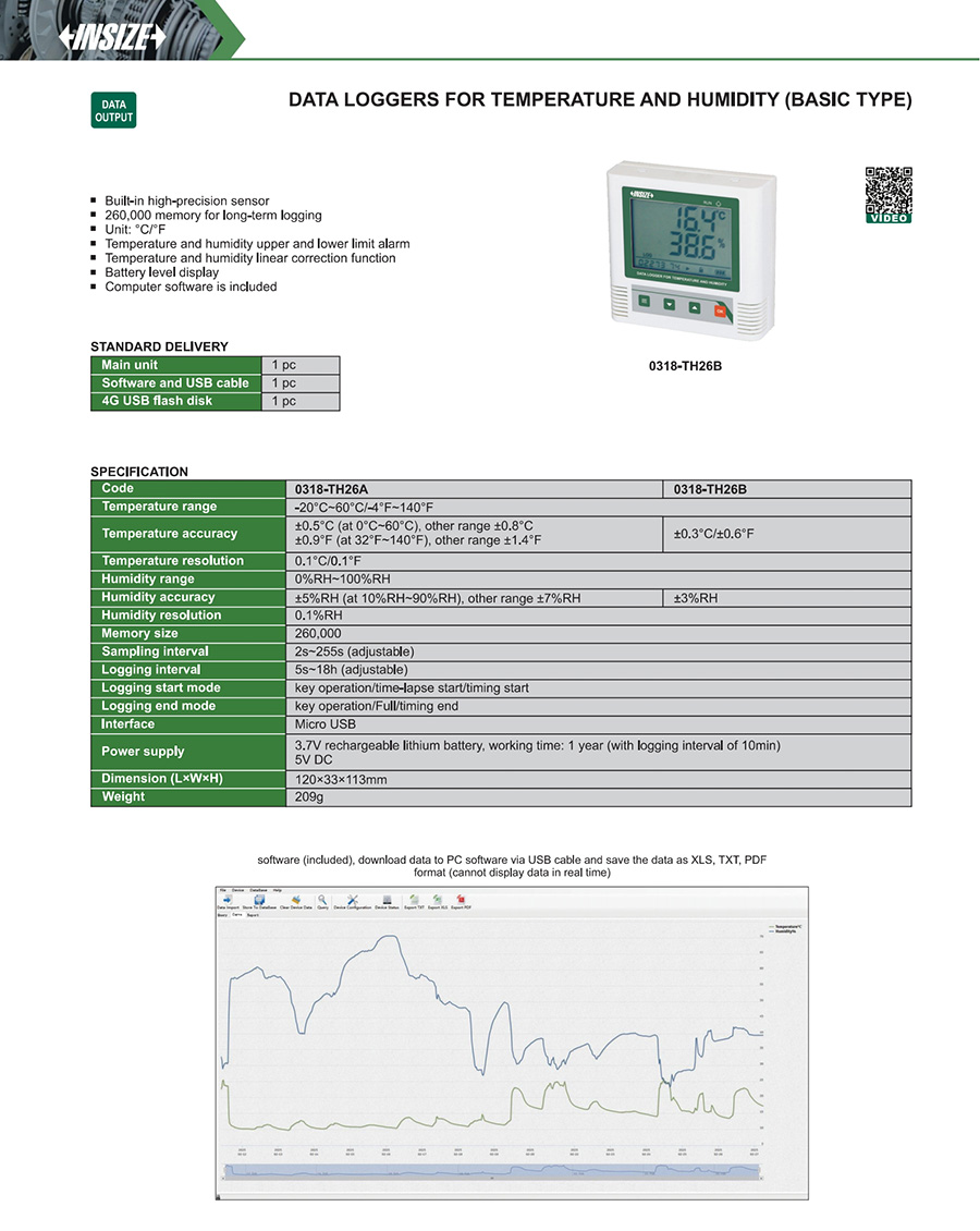0318-TH26A digital internal ±0.5°C (at 0°C~60°C), other range ±0.8°C±0.9°F (at 32°F~140°F), other range ±1.4°F 0%RH~100%RH ±5%RH (at 10%RH~90%RH), other range ±7%RH yes yes yes -20°C~60°C/-4°F~140°F
