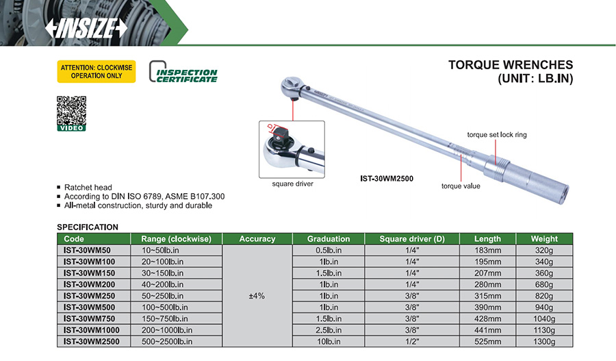 | IST-30WM500 | mechanical preset | 100~500lb.in | engraved-line | fixed ratchet head |