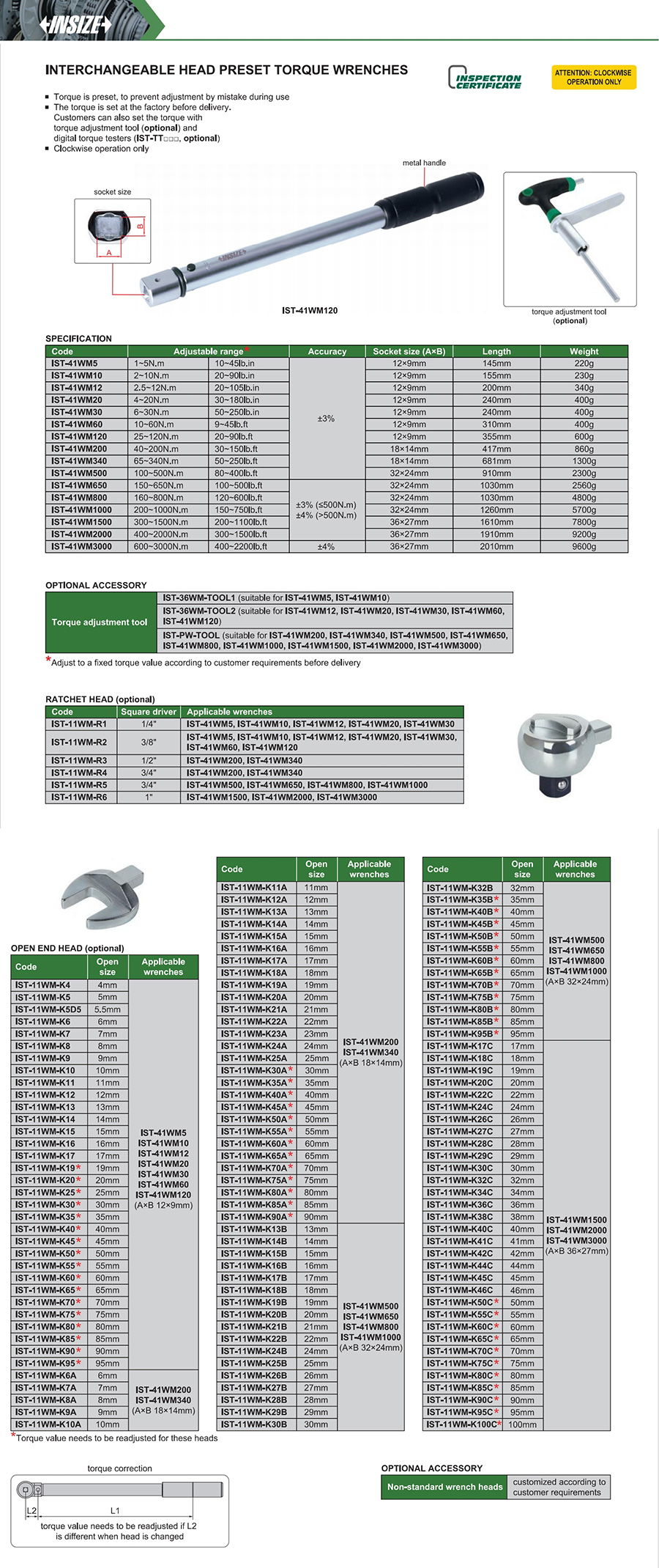 IST-41WM1000 mechanical preset 200~1000N.m, 150~750lb.ft preset fixed-value interchangeable head