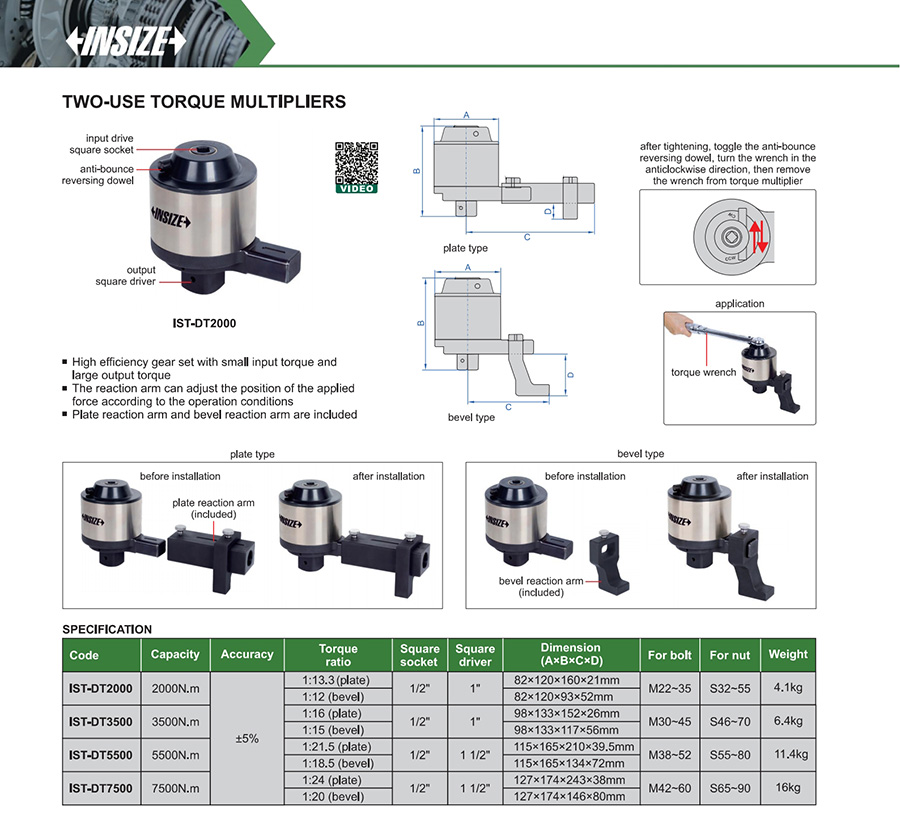 IST-DT2000 mechanical multiplier 2000N.m no torque display fixed ratchet head