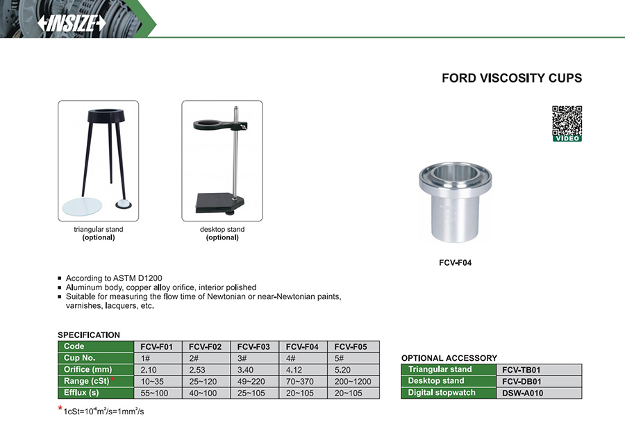 Suitable for measuring the flow time of Newtonian or near-Newtonian paints, varnishes, lacquers, etc.